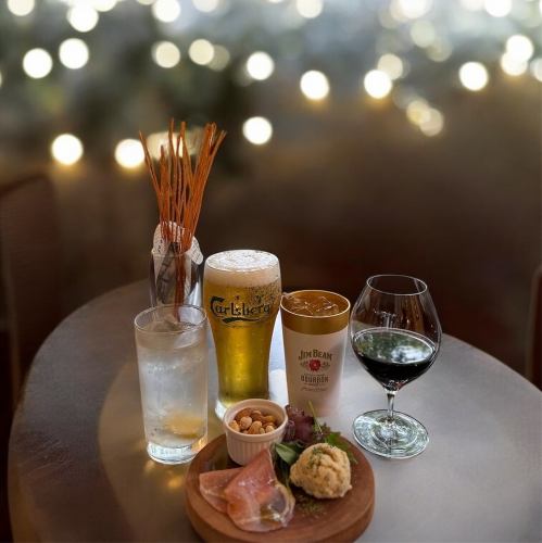 お好きなドリンク1杯(グラスワイン/レモンサワー/ジムビームハイボール/生ビール)と本日のタパス3種盛&パスタフリット食べ放題のお得なセット☆乾杯はぜひこちらでどうぞ♪